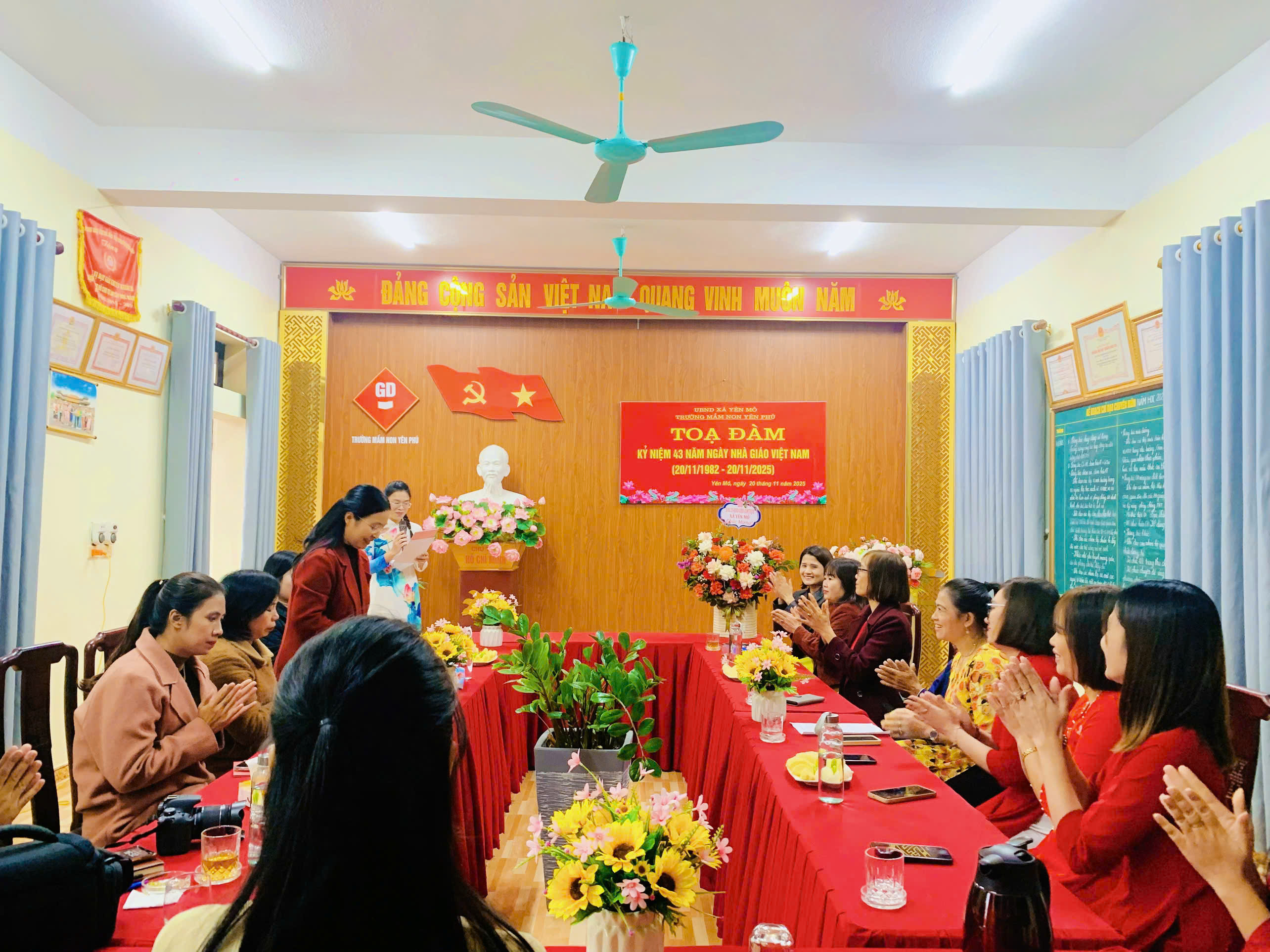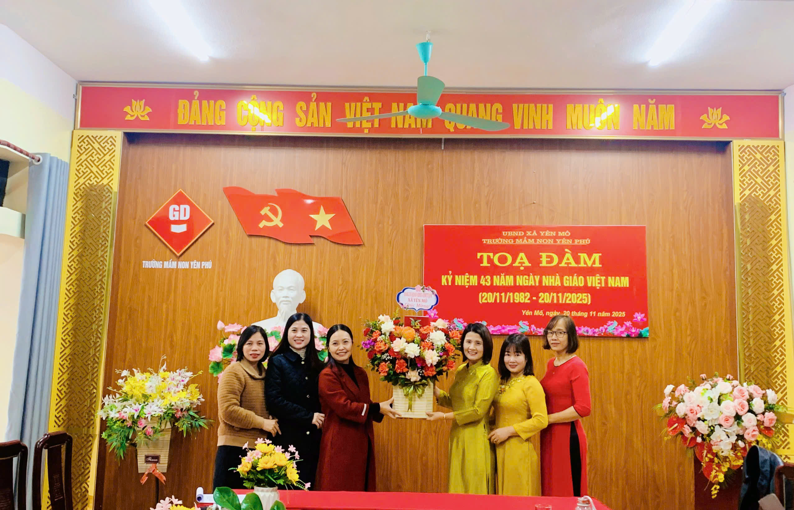 🍀🍀Tại buổi làm việc, sau khi nghe đại diện lãnh đạo nhà trường báo cáo tóm tắt tình hình năm học 2025–2026, đồng chí Bùi Thị Thu Hiền, Bí thư Đảng ủy xã đã ghi nhận, biểu dương nỗ lực của tập thể cán bộ, giáo viên và học sinh nhà trường, đồng thời định hướng một số nhiệm vụ trọng tâm nhằm tiếp tục phát huy những kết quả đã đạt được, tiếp tục đoàn kết thống nhất, xây dựng nhà trường ngày càng phát triển. 💐Nhân dịp Ngày Nhà giáo Việt Nam 20/11, các đồng chí lãnh đạo, đại diện đoàn đại biểu đã trao tặng hoa và quà chúc mừng đội ngũ CBGVNV nhà trường, thể hiện sự quan tâm, yêu mến, tin tưởng của các cấp Lãnh đạo đối với trường Mầm non Yên Phú nói riêng và Ngành Giáo dục nói chung. Đây là nguồn động viên to lớn, tiếp thêm động lực để cô và trò nhà trường tiếp tục cố gắng phấn đấu, đạt nhiều thành tích cao hơn nữa trong năm học này và những năm tiếp theo💐.