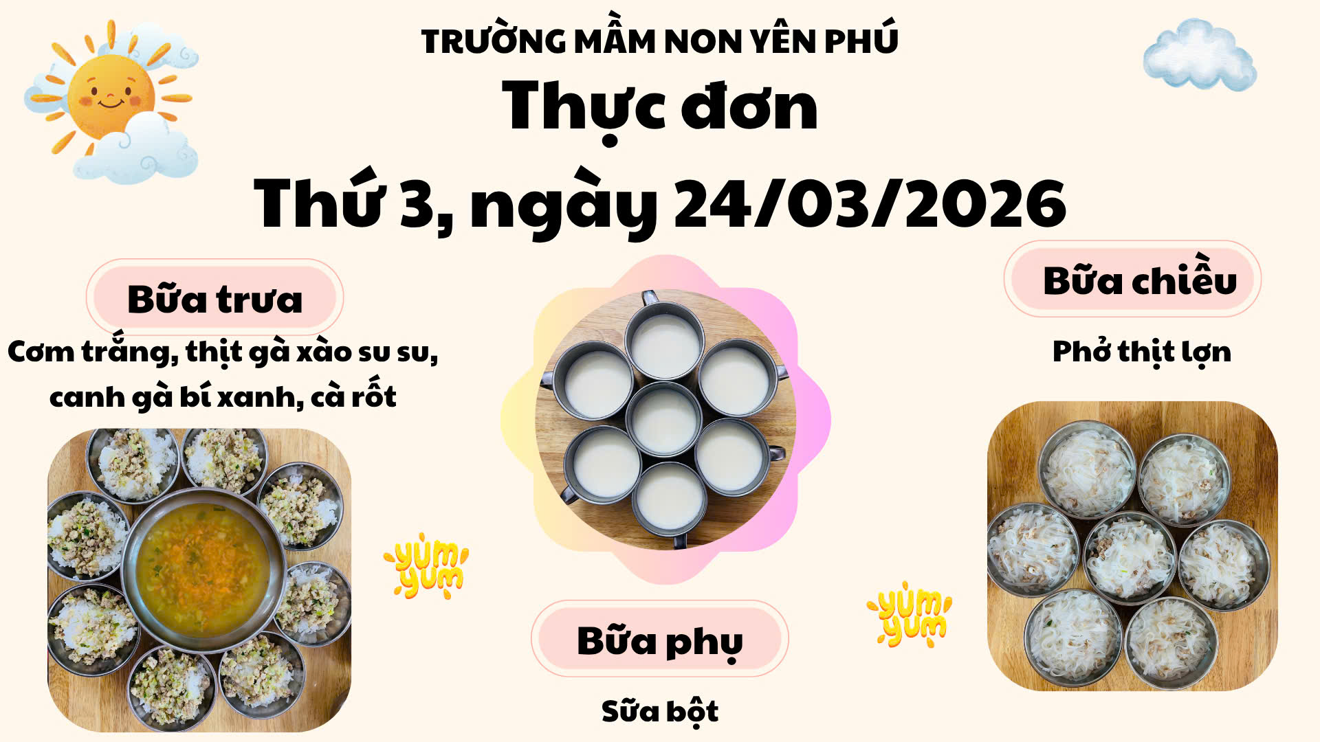🌈 THỰC ĐƠN NGÀY 24/03/2026 – TRƯỜNG MẦM NON YÊN PHÚ 🌈