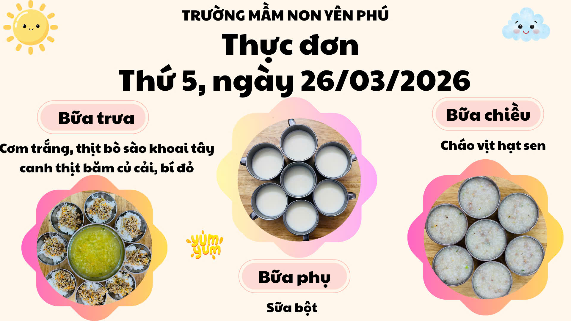 🌈 THỰC ĐƠN THỨ 5 – NGÀY 26/03/2026🌈