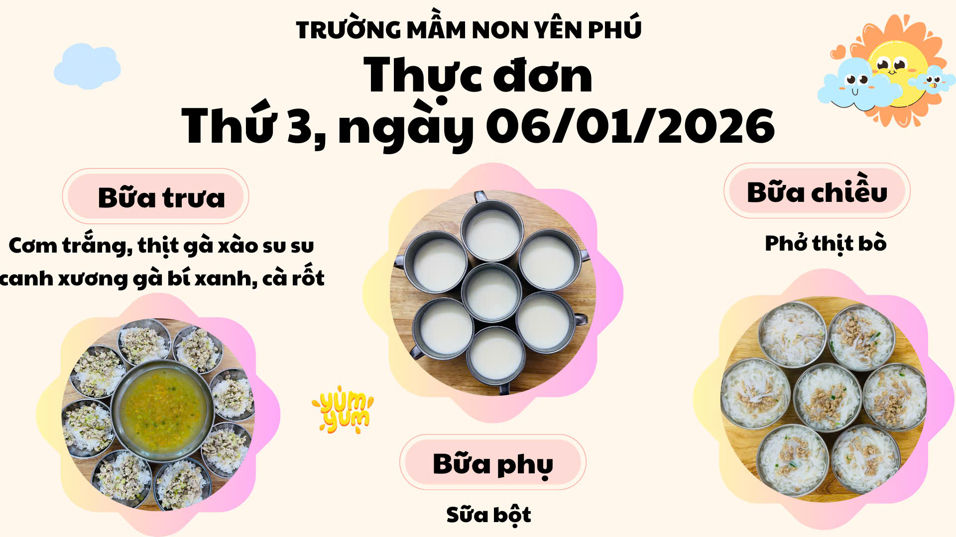 🌤️🍽️ THỰC ĐƠN THỨ 3 – NGÀY 06/01/2026 🏫 Trường Mầm non Yên Phú
