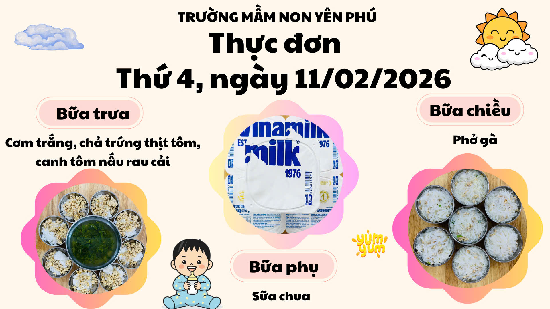 🌤️ TRƯỜNG MẦM NON YÊN PHÚ 📌 Thực đơn Thứ 4, ngày 11/02/2026