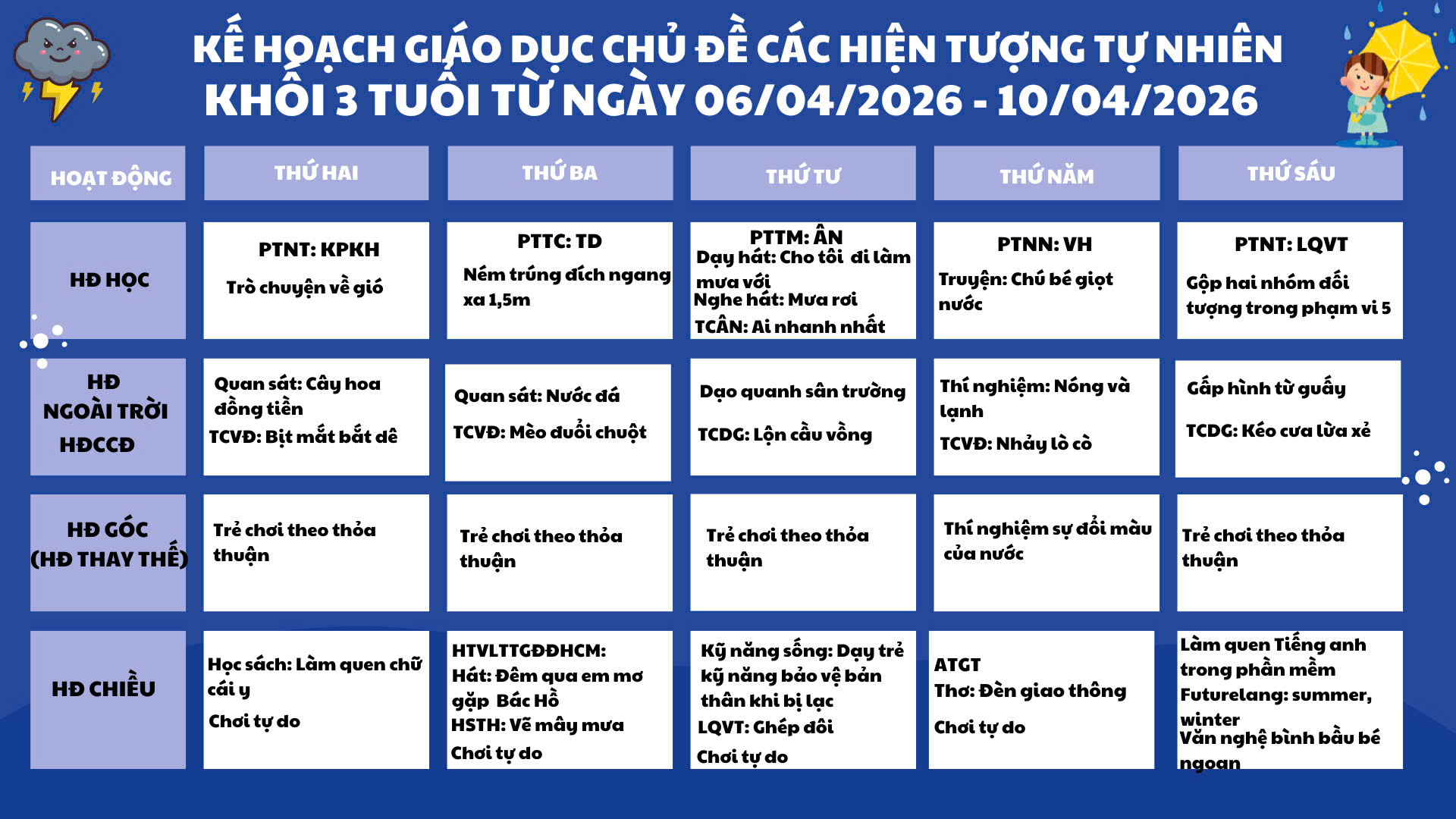 🌦️ KẾ HOẠCH GIÁO DỤC TUẦN: CÁC HIỆN TƯỢNG TỰ NHIÊN 🌈