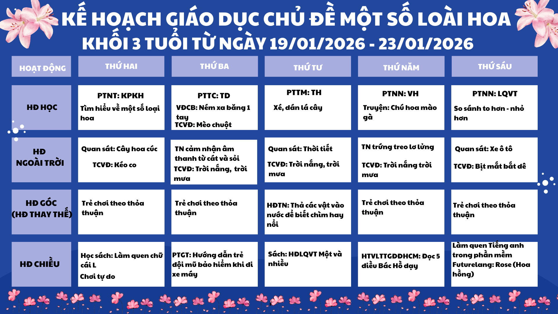 📅 Từ ngày 19/01/2026 đến 23/01/2026 Khối 3 Tuổi