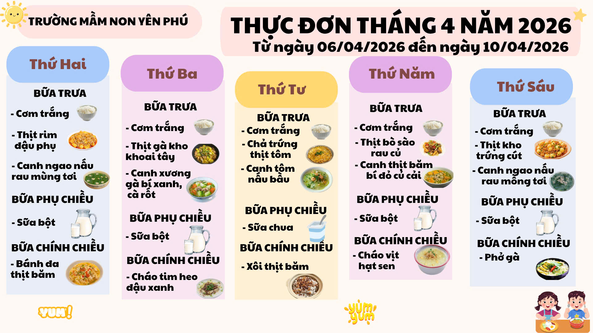 🌸 THỰC ĐƠN TUẦN (06/04 – 10/04/2026) 🌸