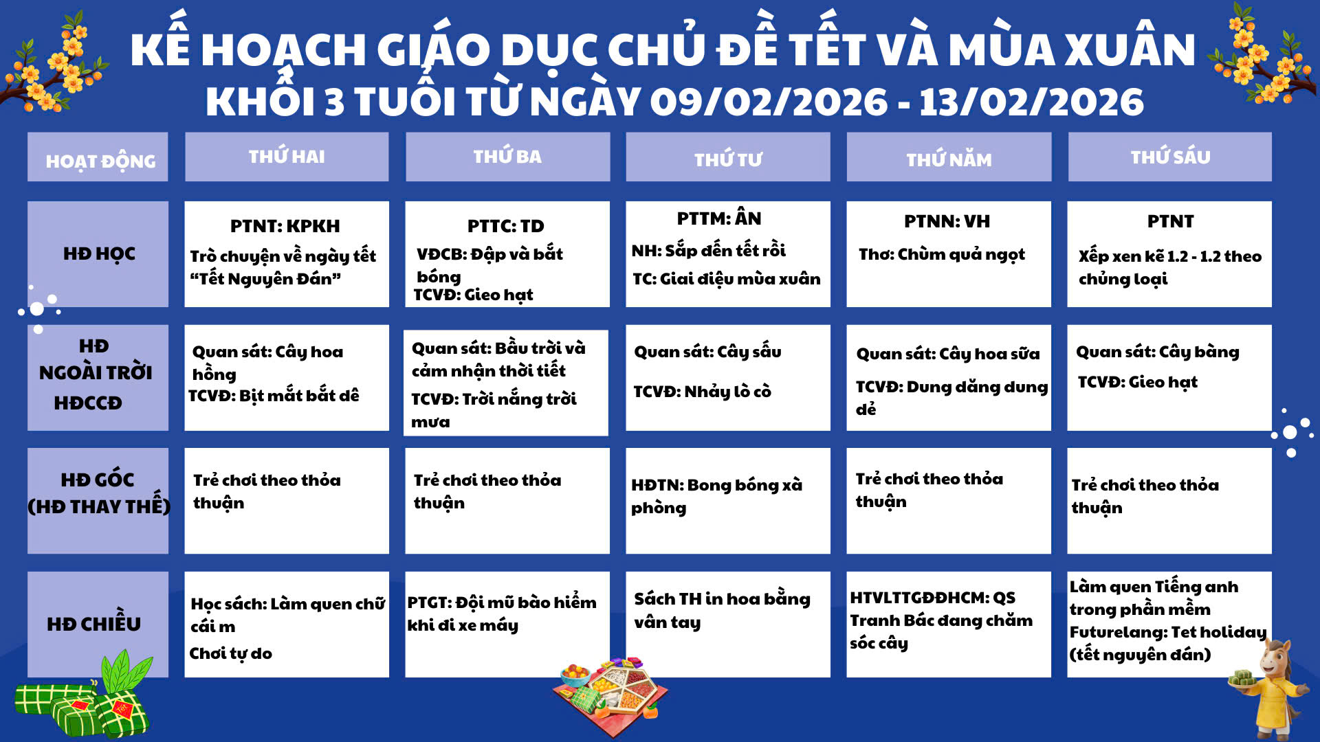 🌼 KẾ HOẠCH GIÁO DỤC CHỦ ĐỀ: TẾT VÀ MÙA XUÂN 🌼