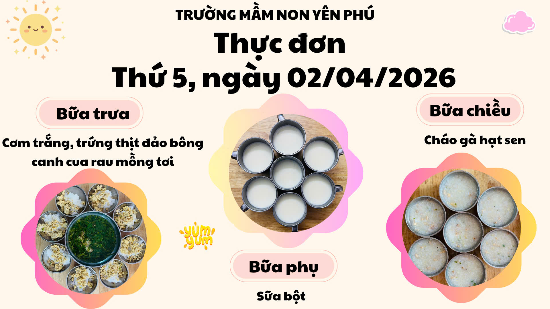 #MamNonYenPhu #ThucDonCuaBe #BeAnNgon #ChamSocTre #DinhDuongMamNon #YeuThuongMoiNgay