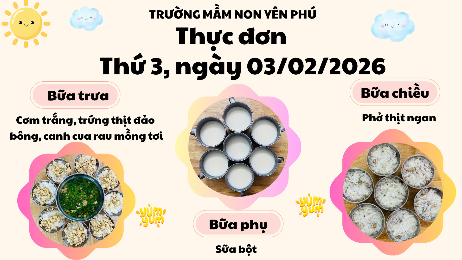 🍽️ THỰC ĐƠN NGÀY THỨ 3 – 03/02/2026 🍽️