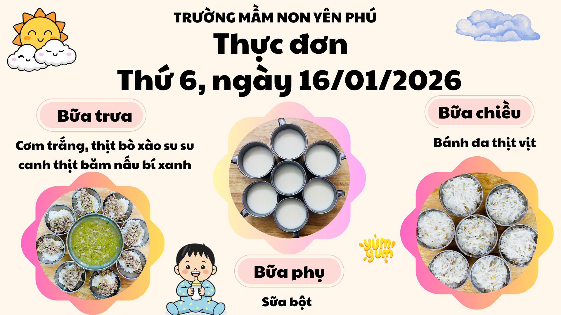🍽️ Thực đơn Thứ 6 – 16/01/2026 – TRƯỜNG MẦM NON YÊN PHÚ 🏫