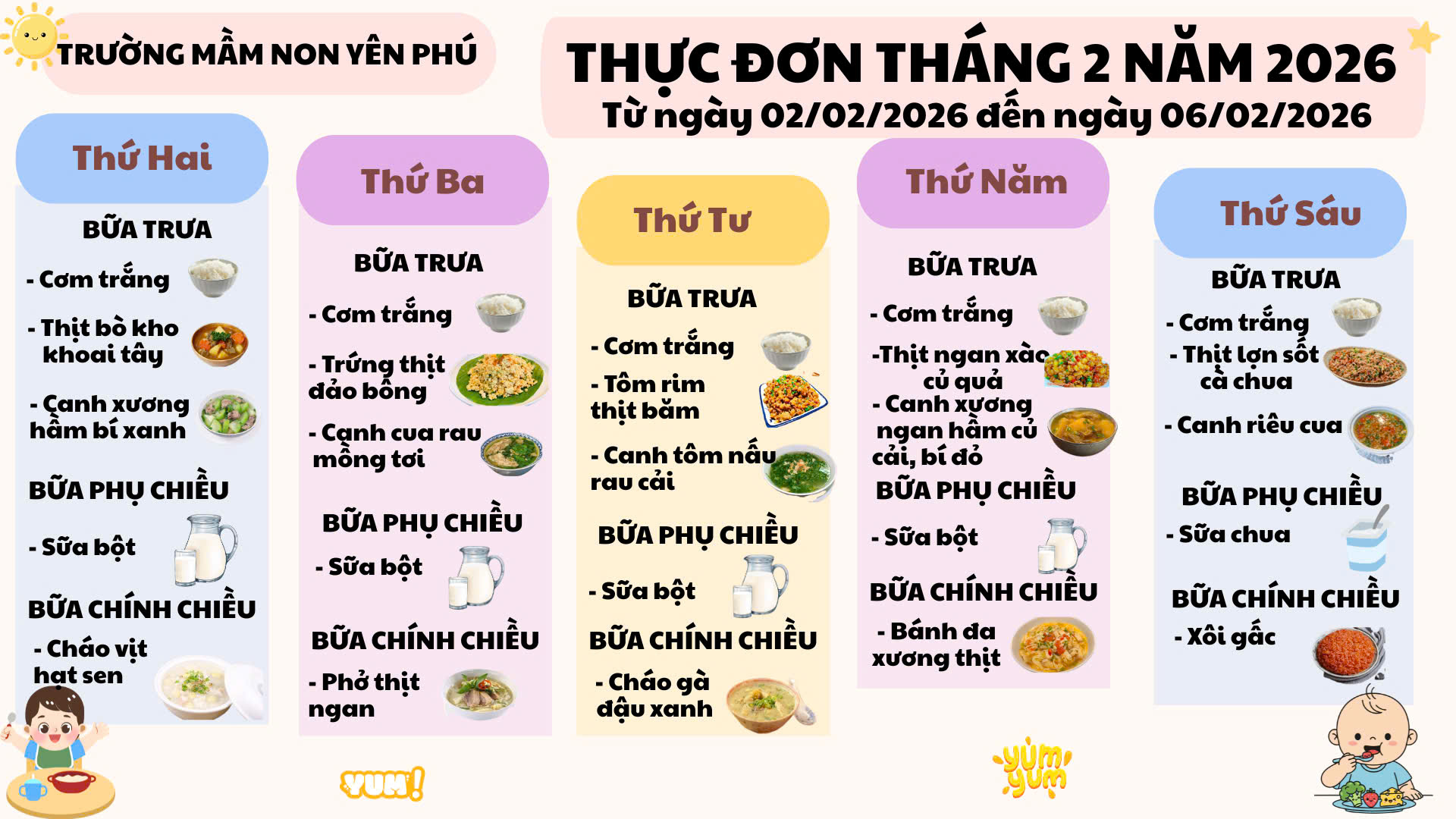 🍽️ THỰC ĐƠN TUẦN ĐẦU THÁNG 2/2026 CỦA CÁC BÉ YÊU 🍽️ 📍 Trường Mầm non Yên Phú