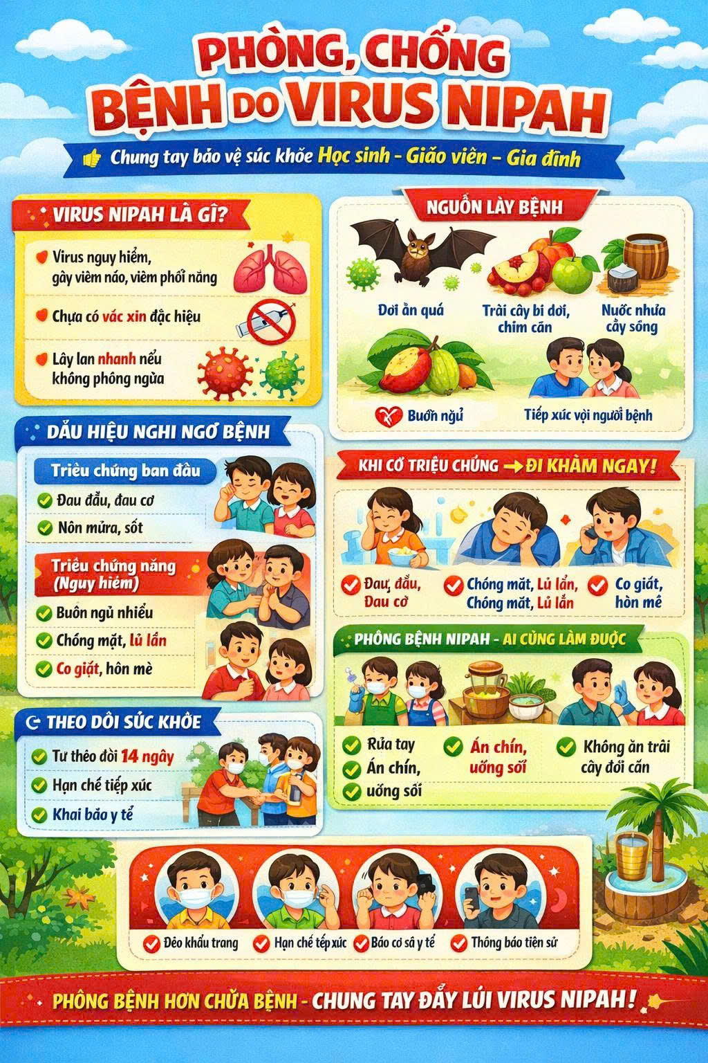 🔔 CHỦ ĐỘNG PHÒNG, CHỐNG DỊCH BỆNH DO VIRUS NIPAH – VÌ SỨC KHỎE CỦA TRẺ VÀ CỘNG ĐỒNG 🔔