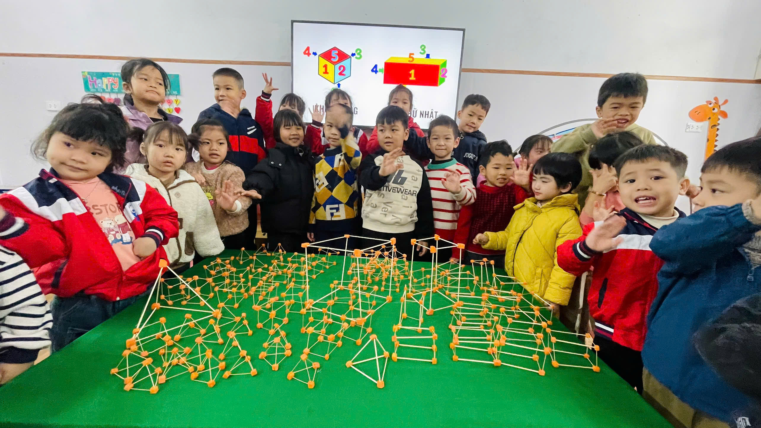Thay vì chỉ nhìn qua tranh vẽ 2D trên trang giấy, các bé tại lớp 5c Trường Mn Yên Phú đã được học về hình khối thông qua việc trực tiếp chế tạo.
