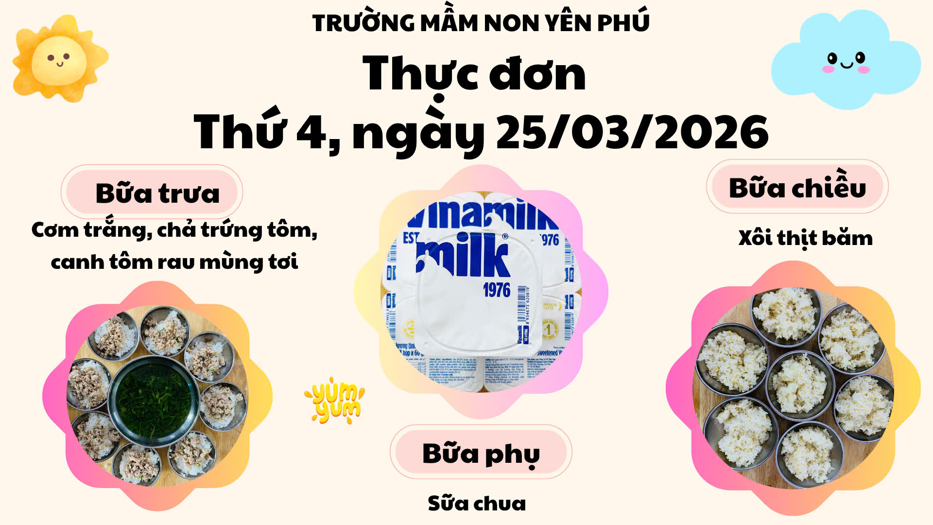 THỰC ĐƠN DINH DƯỠNG – THỨ 4 (25/03/2026) 🌈